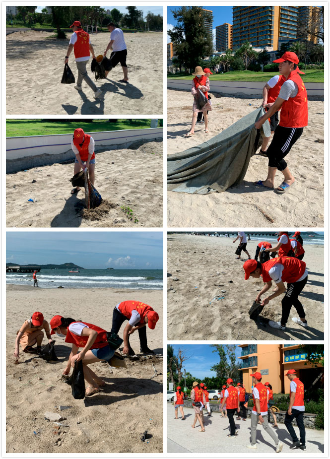 在两天的团建活动中,义工队组织了一次海滩清理垃圾行动,对双月湾的栈道、海面和沙滩上的垃圾进行了清理。义工队成员们用自己的双手、汗水,以实际行动为自然环境出一份力,守护美丽的沙滩。